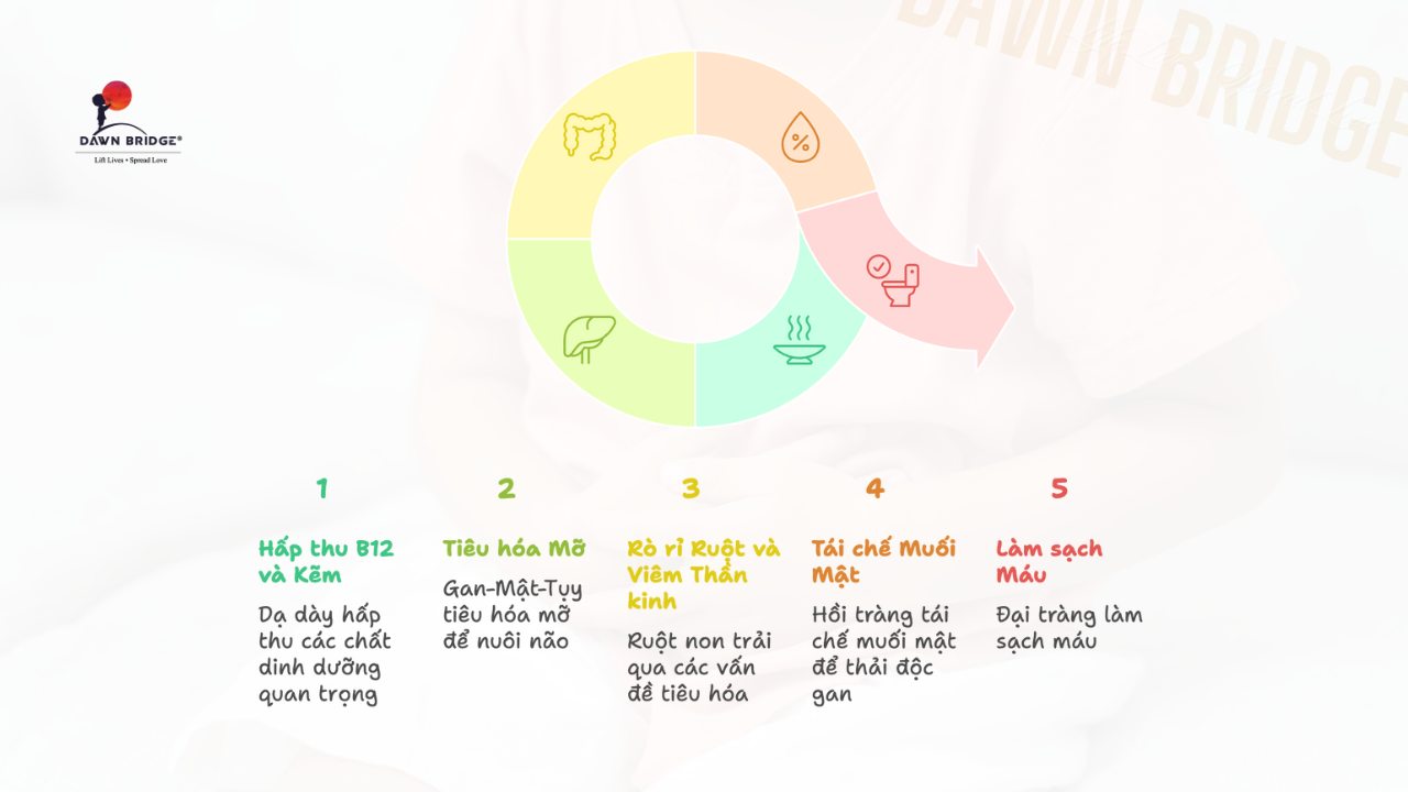 - Từ Trạm 1 (Dạ dày) quyết định hấp thu B12 (giấc ngủ) và Kẽm (vị giác).